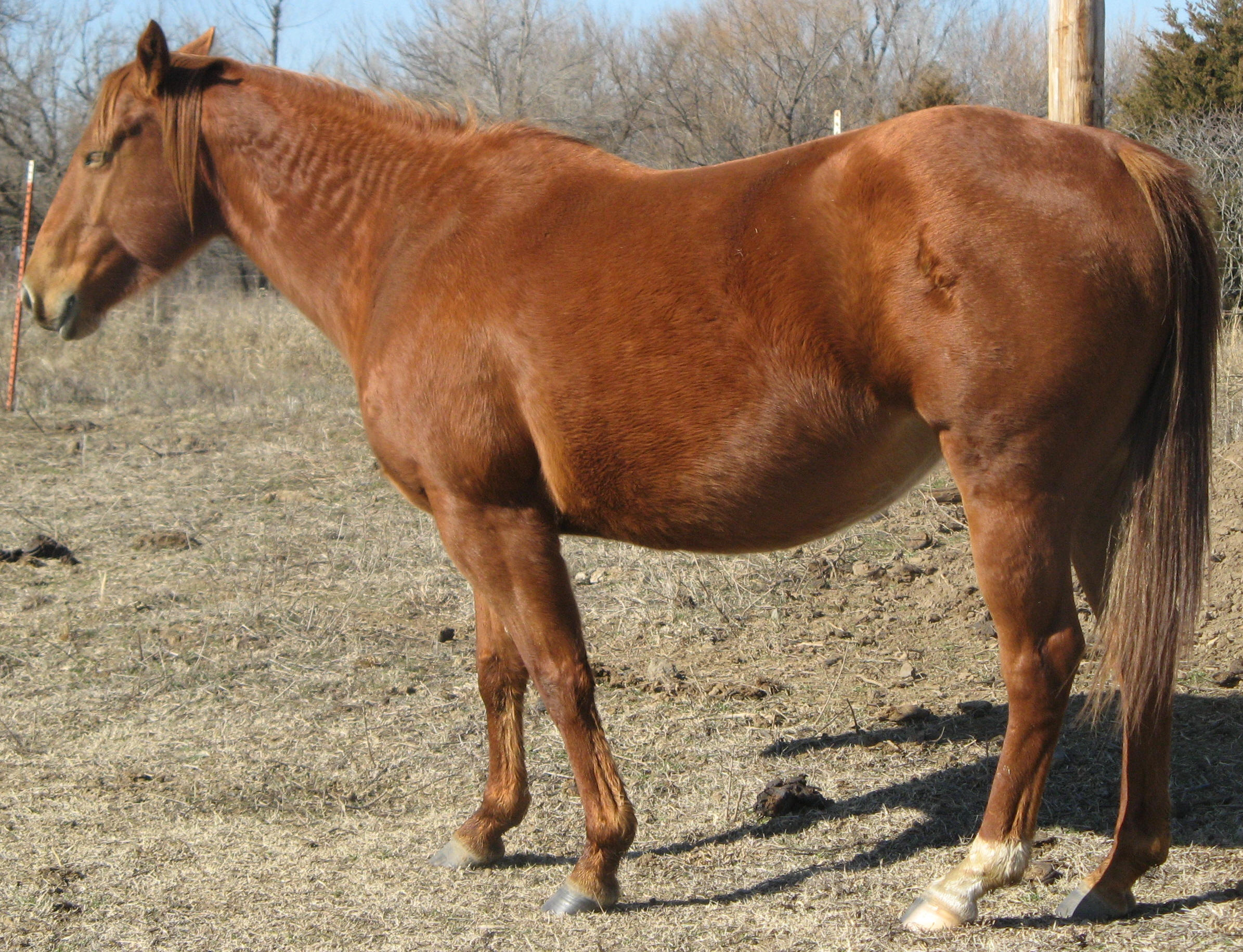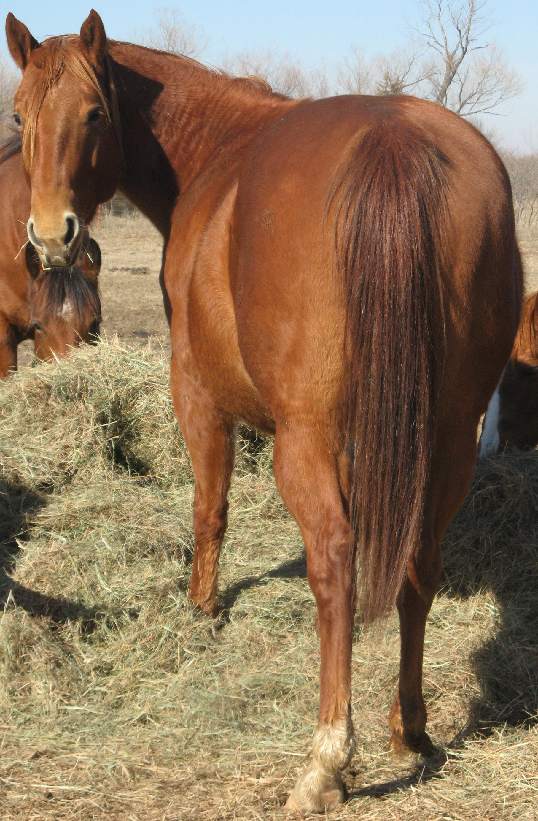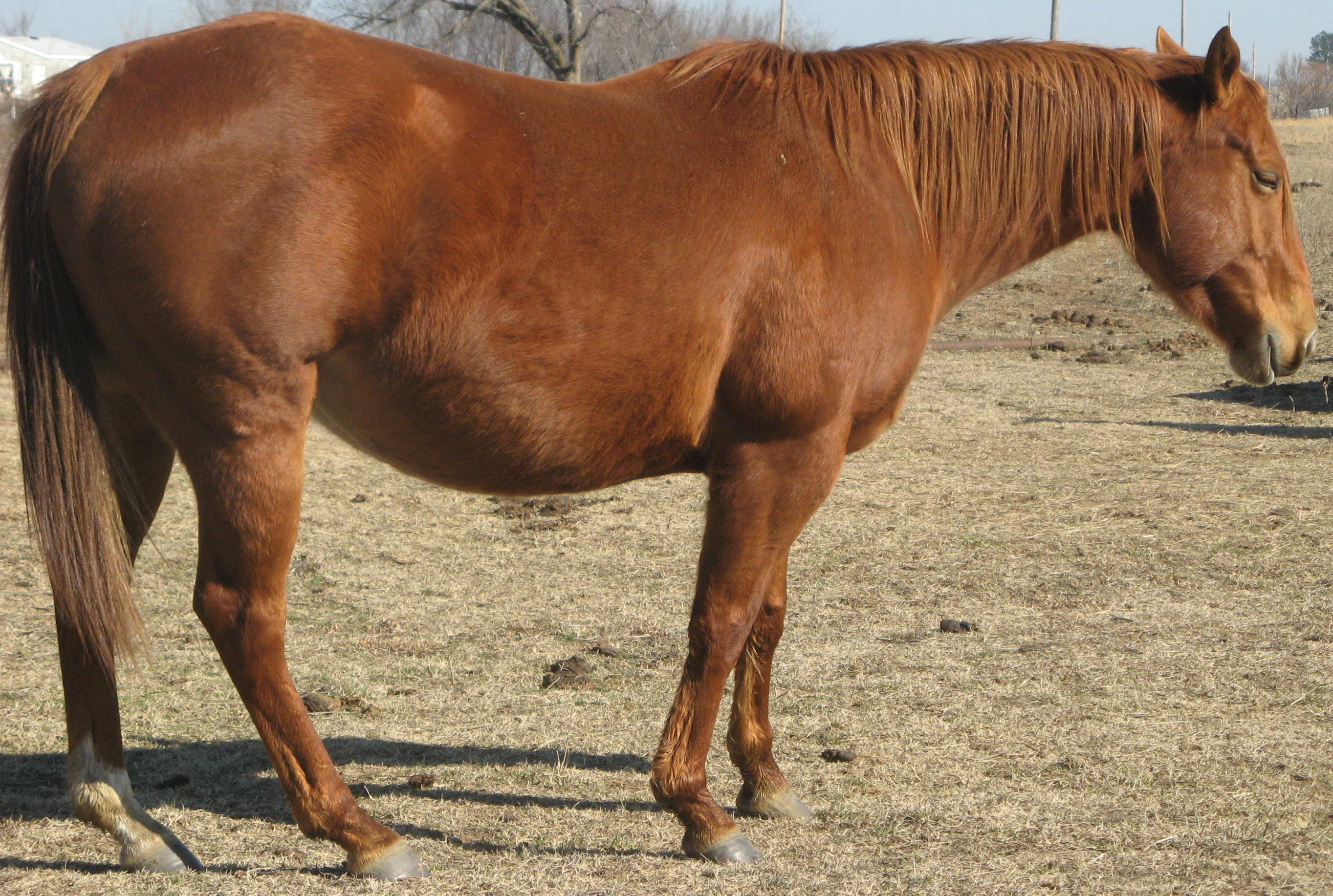 Paddys Pretty Girl, aka Paddy, is a sorrel mare. She is registered AQHA (#4859109). She was born May 2006.