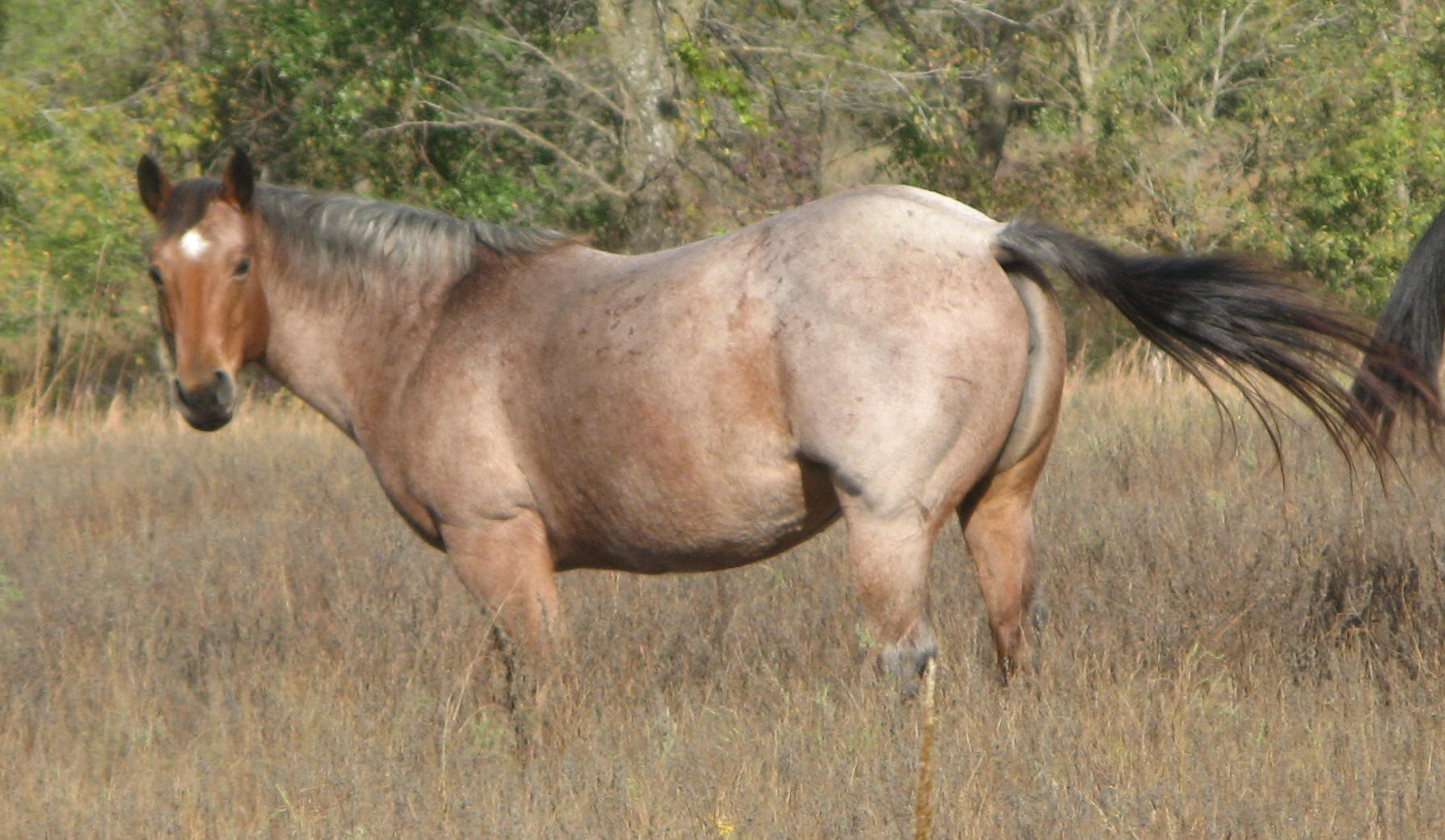 Rafter Otoe Squaw, aka Squaw, is a bay roan mare. She is registered AQHA (#4202128). She was born May 2002.